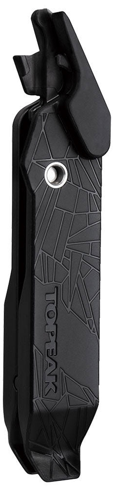 An ingenious lightweight multifunction tool! Two levers connect to form power link pliers for removing or installing a chain’s master link. Topeak Power Lever easily separates into two pieces for use as two tire levers. Integrated chain hook holds chain steady while removing or installing master link.